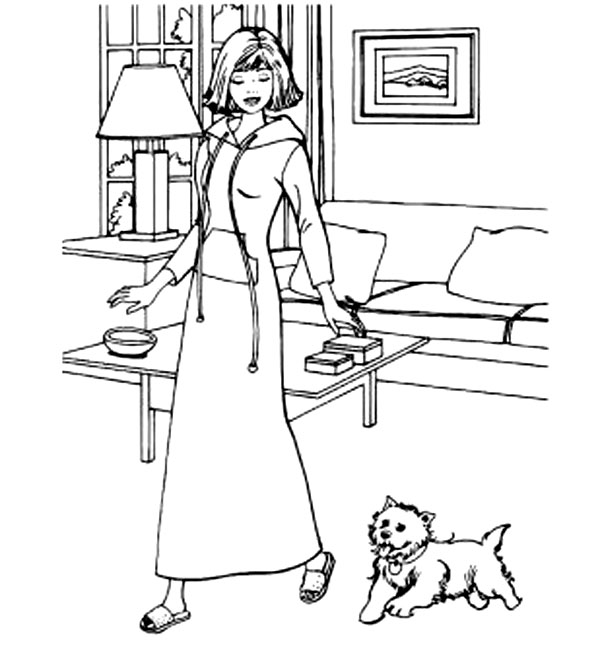 Descriere: Coloreaza plansa cu Barbie si catelusul sau.
