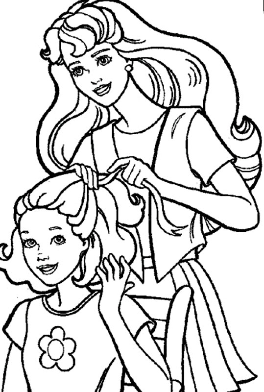 Descriere: Plansa de colorat cu Barbie si sora sa.