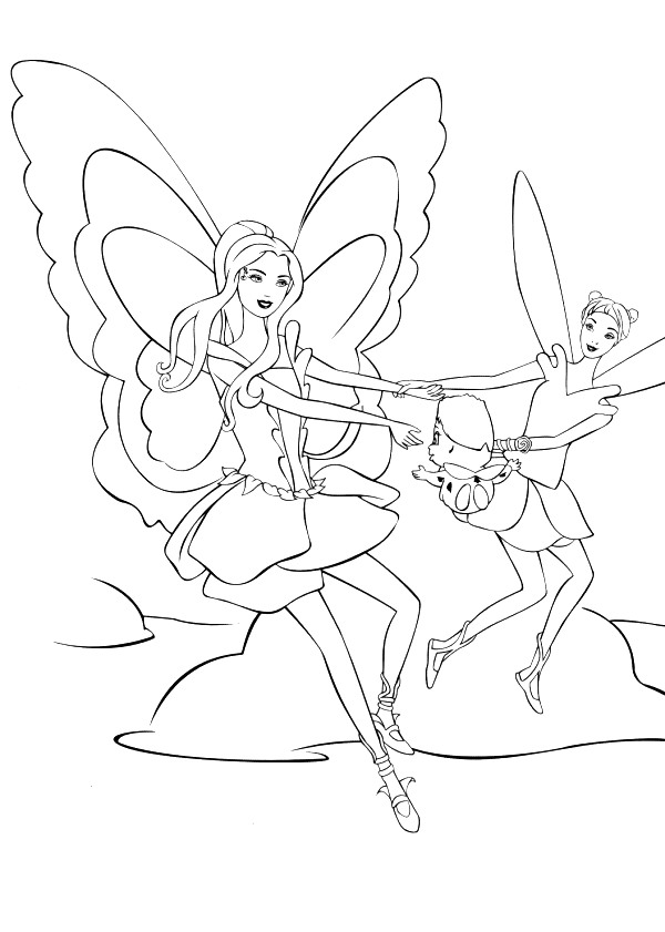 Descriere: Coloreaz-o pe Barbie fluturas din plansa cu papusi.
