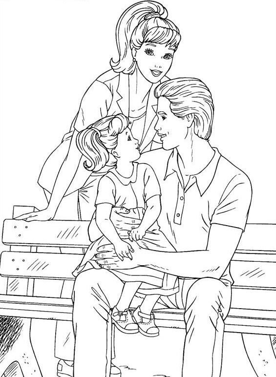 Descriere: Barbie isi iubeste mult familia. Deseneaza aceasta plansa de colorat cu Barbie in familie.