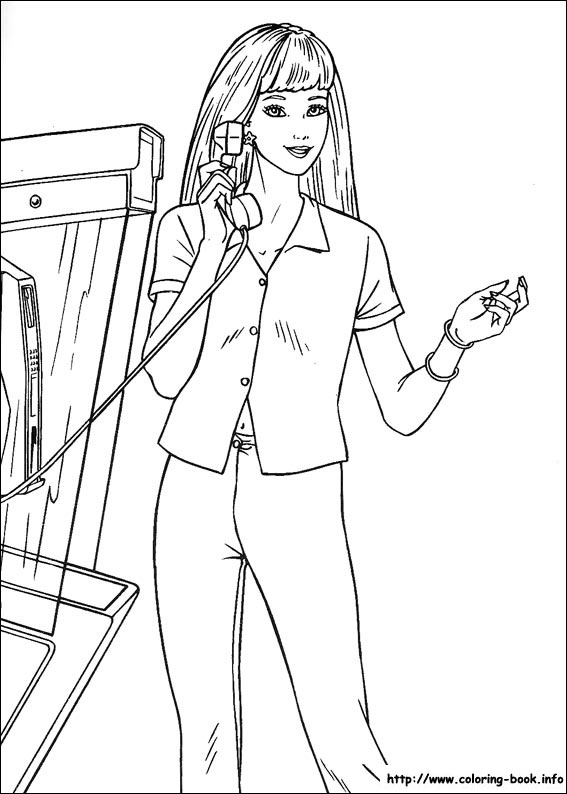 Descriere: Barbie este o fire prietenoasa asa ca-si petrece mult timp vorbind la telefon cu prietenii ei. coloreaza plansa cu Barbie vorbind la telefon.