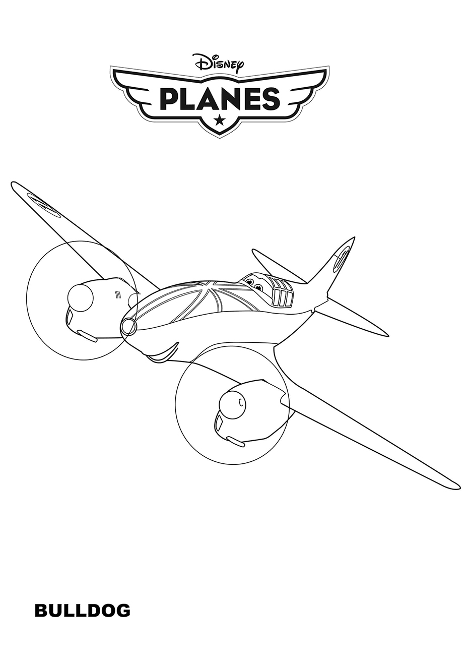 Descriere: Plansa de colorat cu avionul Bulldog din animatia Avioane de la Disney.
