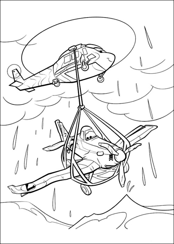 Descriere: Coloreaza scena cu Dusty Crophopper din desenele animate Planes cand este scos din ocean.