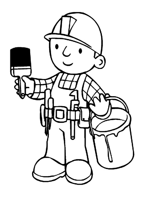 Descriere: Plansa de colorat cu Bob Constructorul care se pregateste sa vopseasca usa.