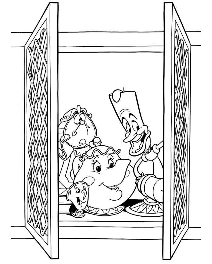 Descriere: Coloreaza plansa cu personajele din Frumoasa si Bestia.