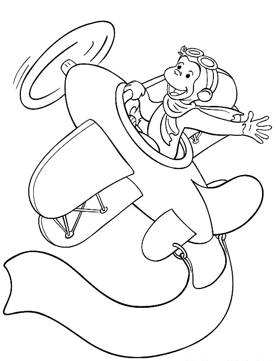 Descriere: Plansa de colorat cu curiosul George in avion.