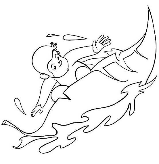 Descriere: Plansa de colorat cu Curiosul George in barcuta.