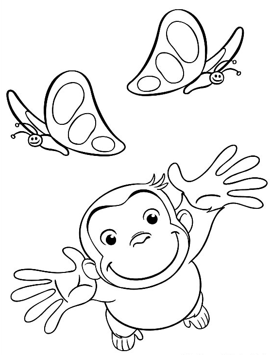 Descriere: Plansa de colorat cu Curiosul George si fluturii.
