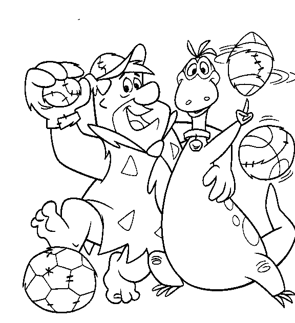 Descriere: Plansa de colorat cu Dino si Fred din familia Flinstone.