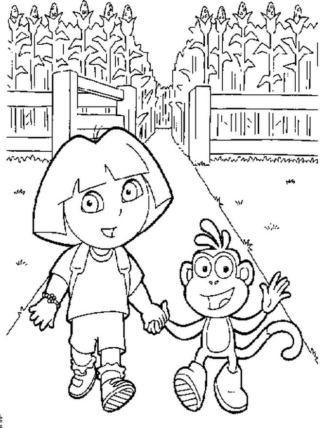 Descriere: Plansa de colorat ce personajele de desene animate Dora si Boots.