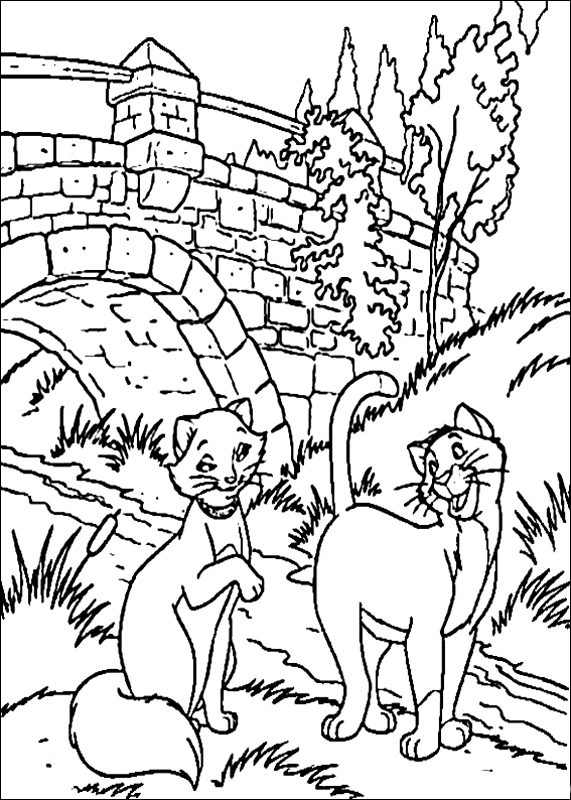 Descriere: Plansa de colorat cu Ducesa si Thomas O'Malley din animatia "Pisicile aristocrate".