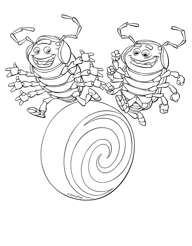 Descriere: Coloreaza plansa cu cei doi gandacei acrobati din animatia Bugs Life.