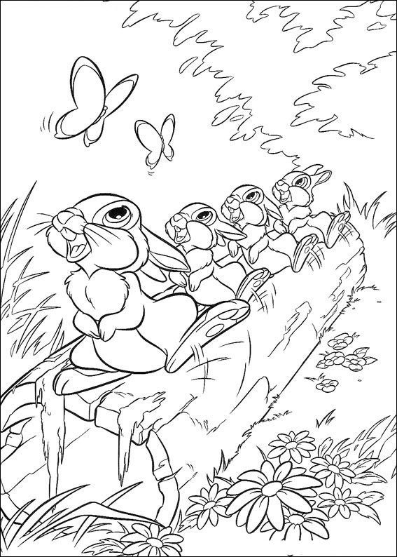 Descriere: Coloreaza plansa cu iepurasii Bocanila din animatia Bambi.