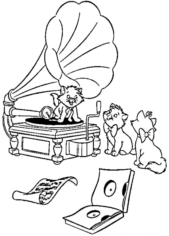 Descriere: Plansa de colorat cu pisicutele din "Pisicile aristocrate".