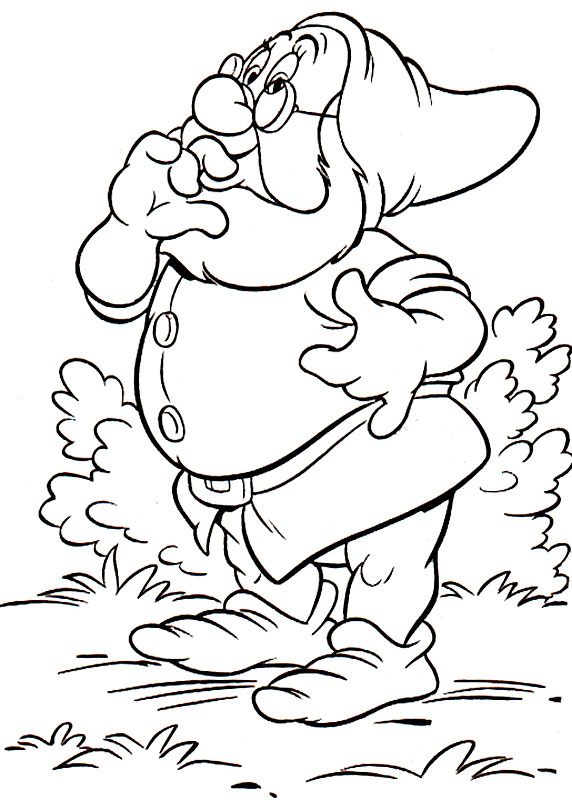 Descriere: Plansa de colorat cu piticul ganditor din povestea Alba ca Zapada si cei 7 Pitici.