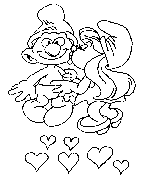 Descriere: Plansa de colorat cu strumfii indragostiti.