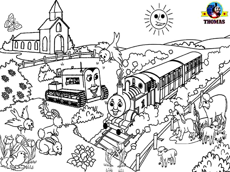 Descriere: Plansa de colorat cu trenuletul Thomas si buldozerul Terence.