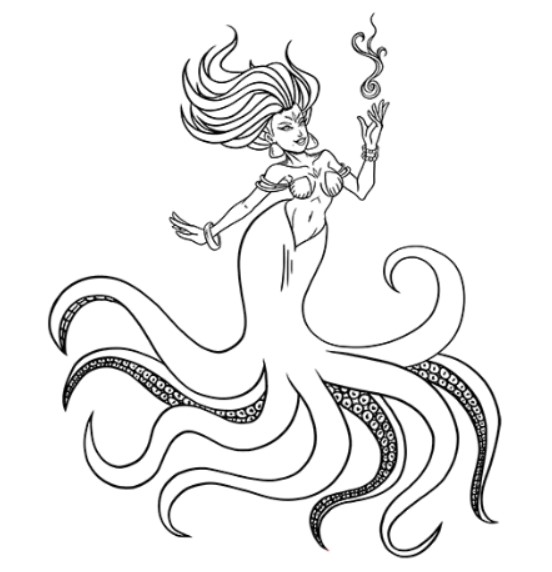 Descriere: Plansa de colorat cu Ursula din Mica Sirena.