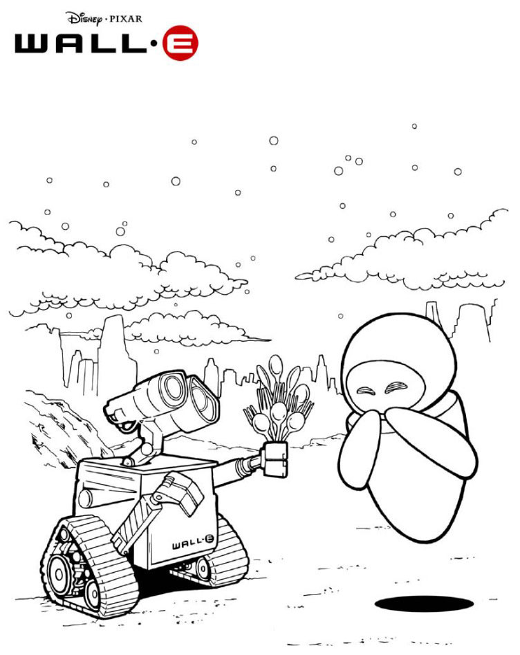 Descriere: Plansa de colorat cu Wall-E si Eve.