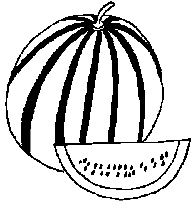 Descriere: Plansa de colorat cu un pepene care are miezul rosu.