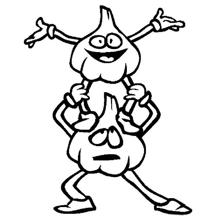 Descriere: Coloreaza cateii de usturoi care fac acrobatii in aceasta plansa cu legume.
