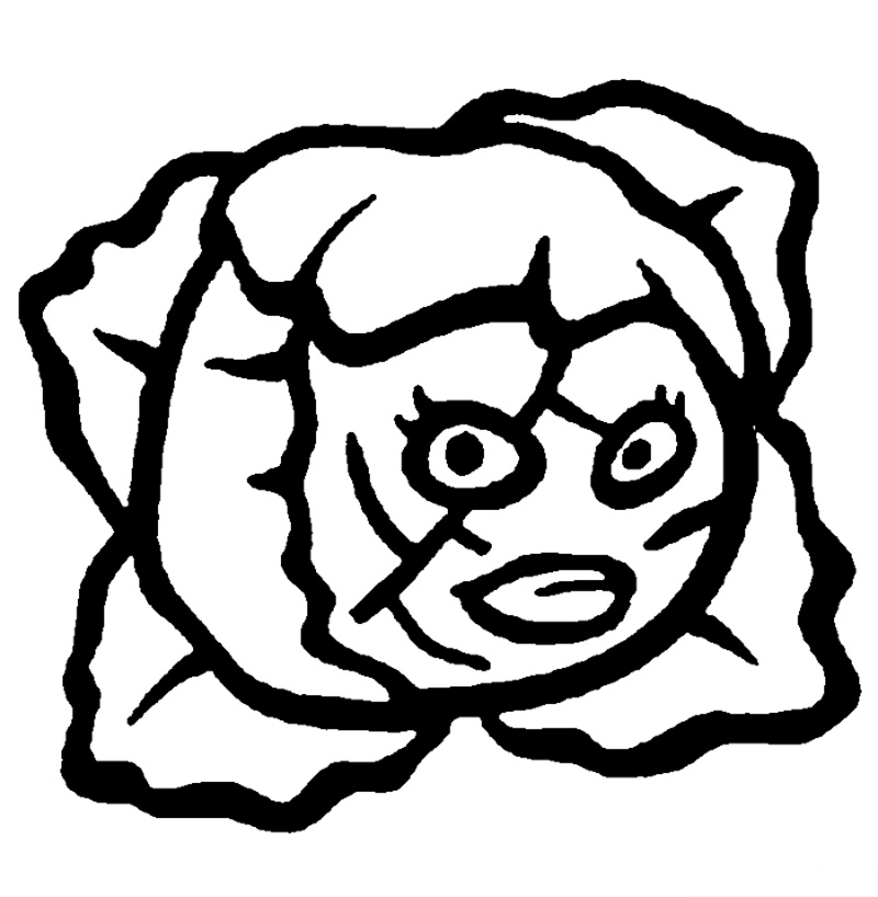 Descriere: Varza din plansa este foarte suparata pentru ca nu este colorata. Hai sa coloram aceasta plansa cu legume.