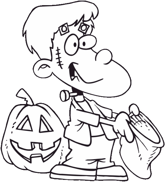 Descriere: Plansa de colorat cu un baietel deghizat in Frankenstein care a iesit sa colinde vecinii de Hallowen.