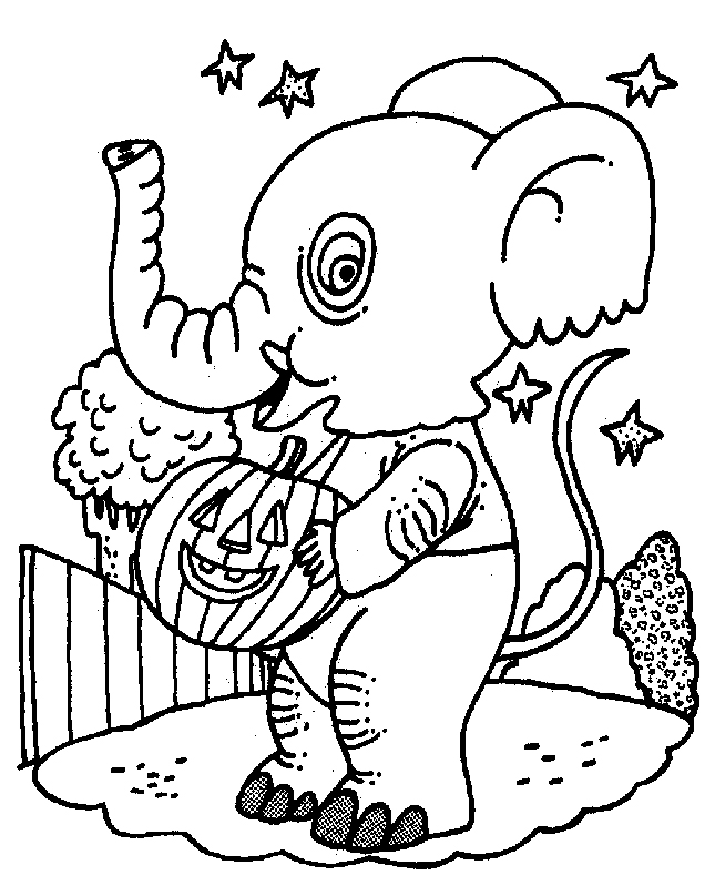 Descriere: Plansa de colorat cu un costum de Halloween in forma de elefant.