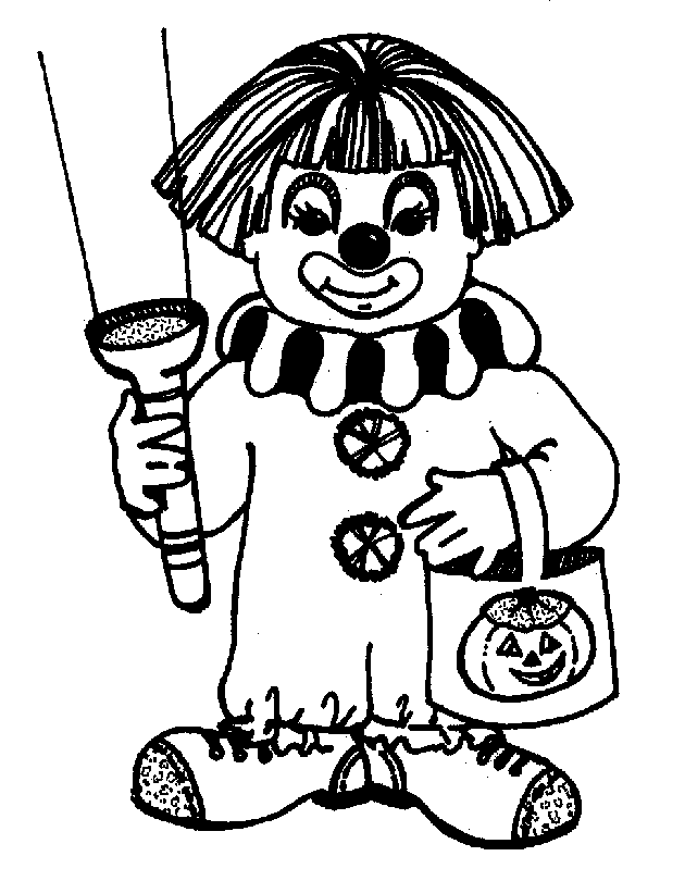 Descriere: Plansa de colorat de Halloween cu un costum de clovn.