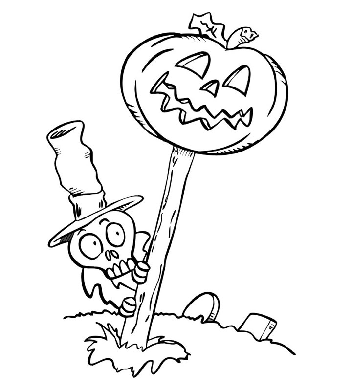 Descriere: Coloreaza plansa cu un craniu si un dovleac de Halloween.