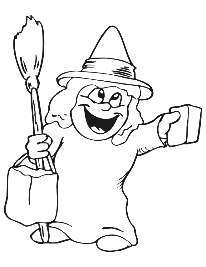 Descriere: Coloreaza plansa cu un copil deghizat intr-o vrajitoare cu matura.
