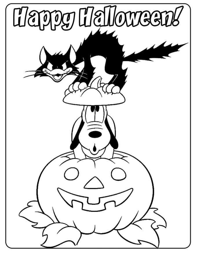 Descriere: Coloreaza plansa cu Pluto si pisica de Halloween.