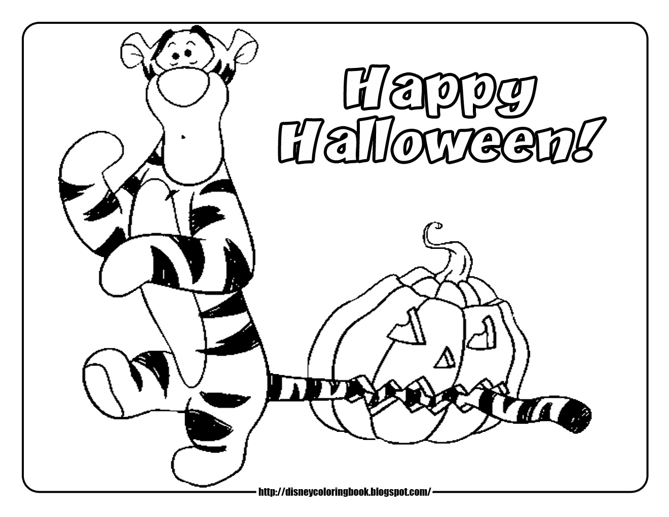 Descriere: Coloreaza plansa cu Tigrisor, prietenul lui Winnie de Plus, care si-a prins coada in dovleacul de Halloween.