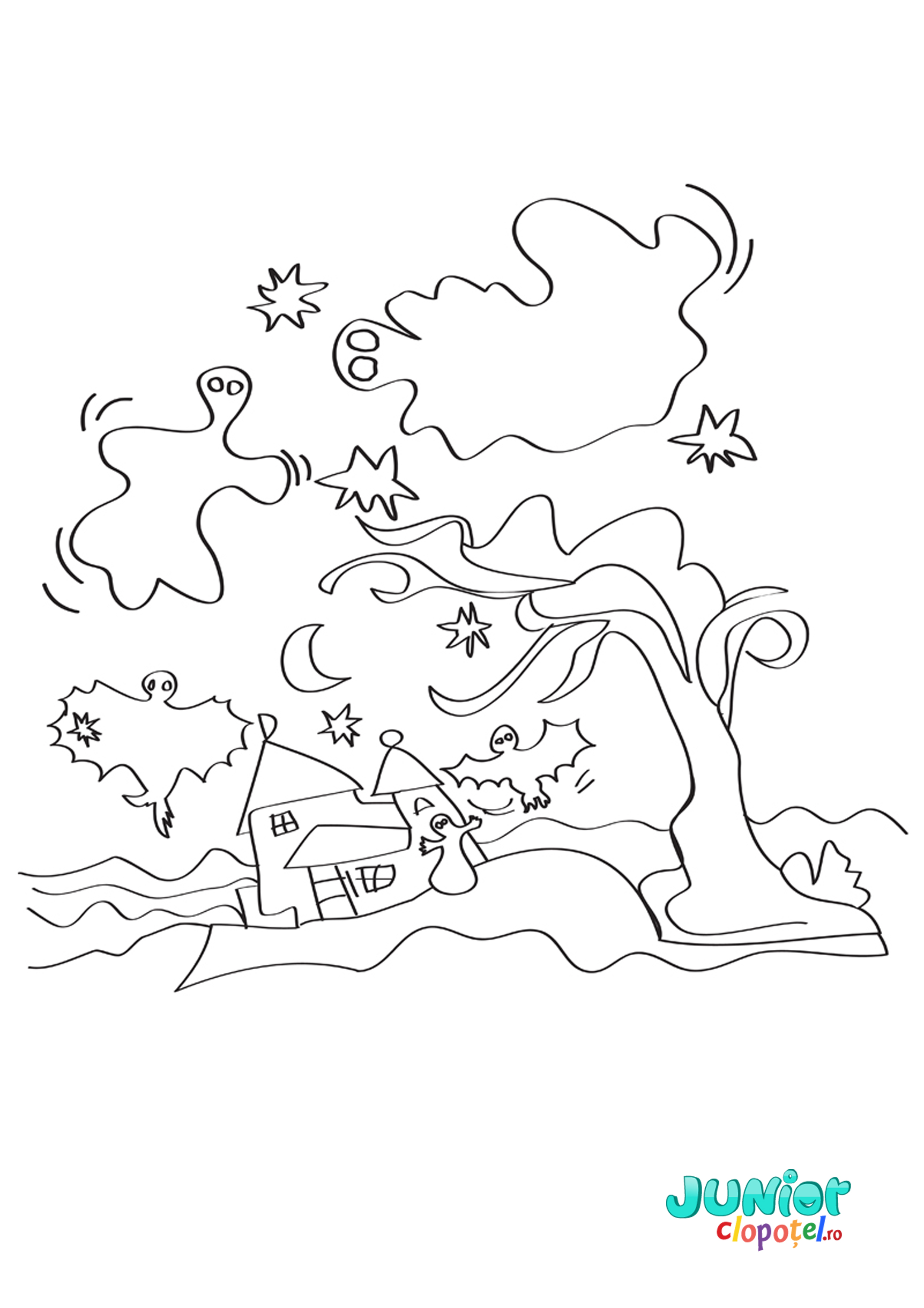 Descriere: Plansa de colorat cu fantomitele de Halloween.