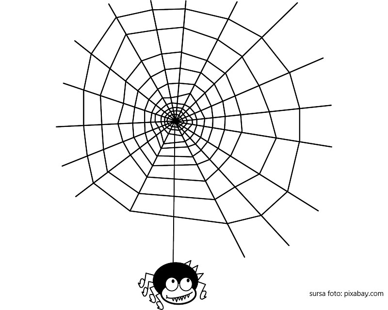 Descriere: Coloreaza peisajul din jurul acestui painjen, unul din multele simboluri de Halloween.