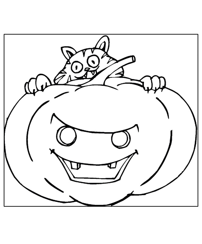Descriere: Coloreaza plansa cu Pisica pe dovleac.