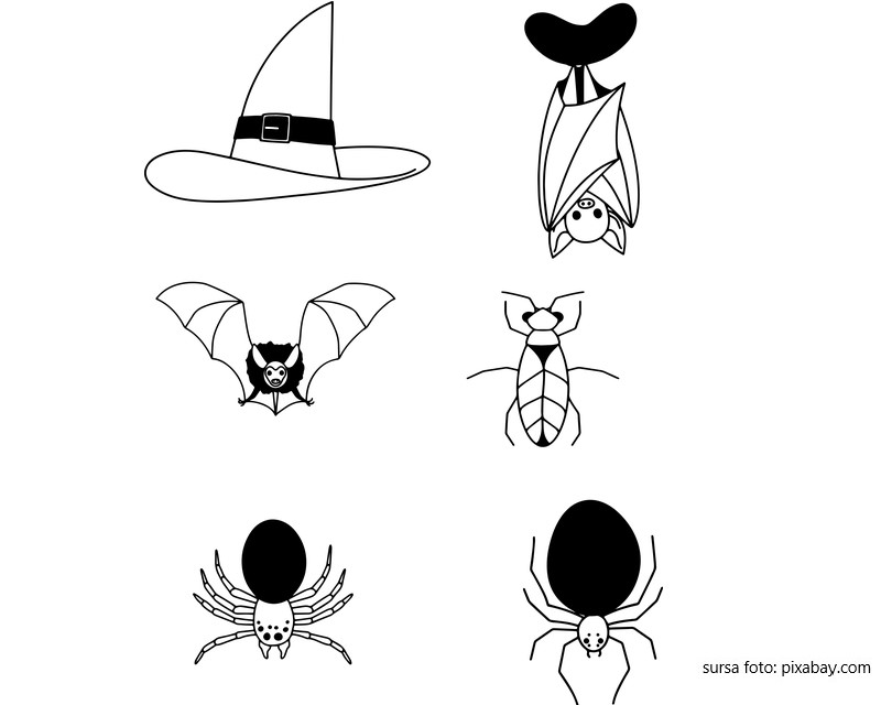 Descriere: Plansa de colorat cu simboluri de Halloween.