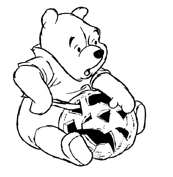 Descriere: Coloreaza plansa cu ursuletul de plus, Winnie care cauta mierea de albine in dovleacul de Halloween.