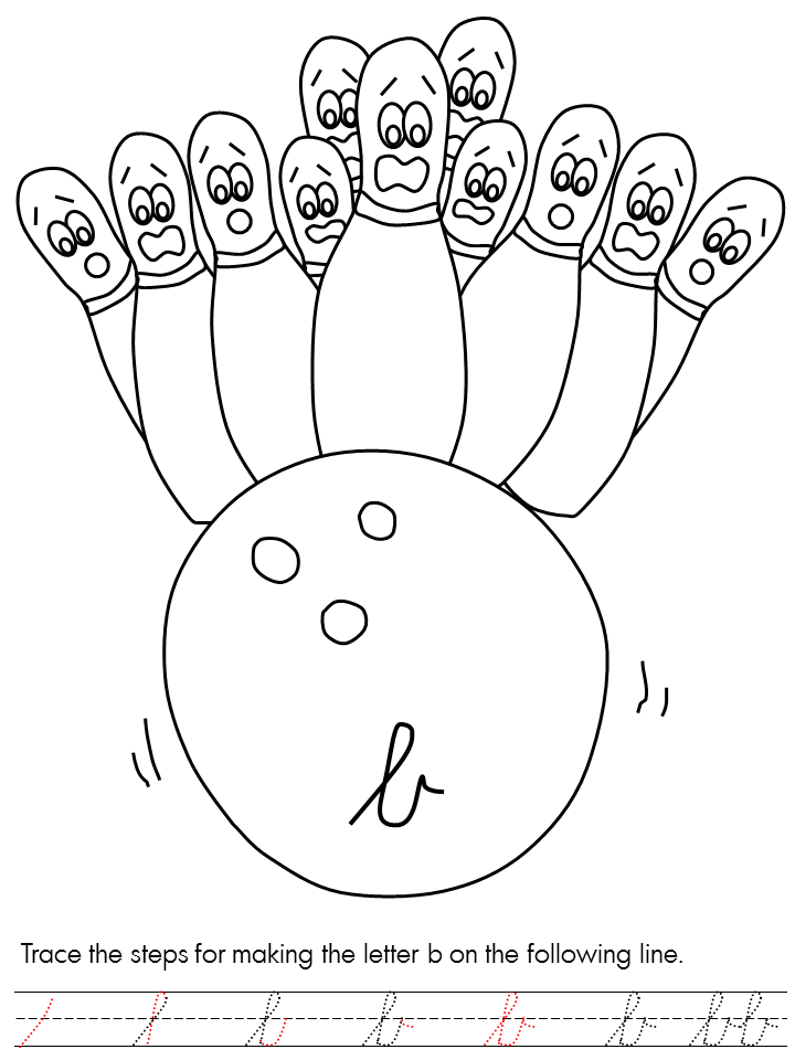 Descriere: Coloreaza popicele si bila de bowling din plansa cu litere.