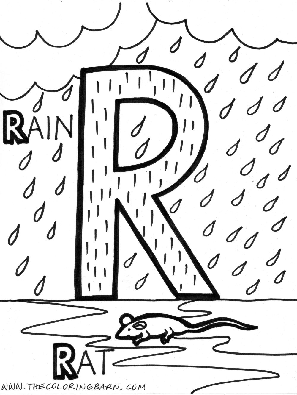 Descriere: Hai sa coloram litera R si asa poate se va opri ploaia.
