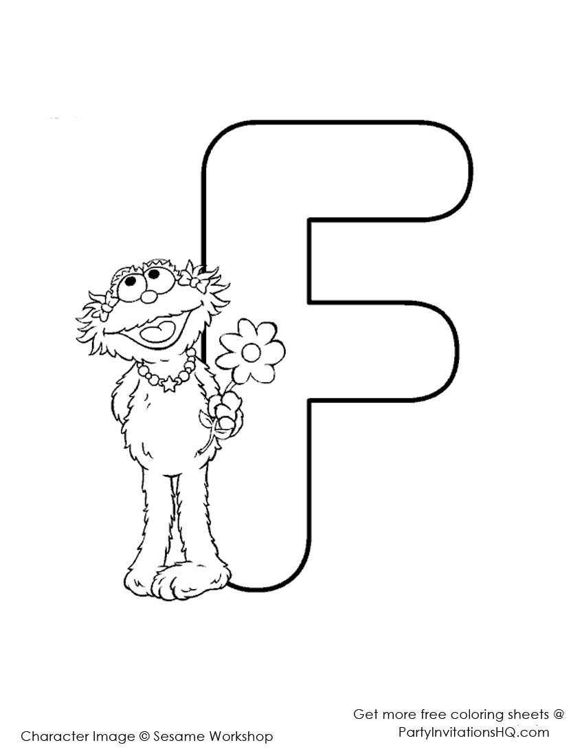 Descriere: Papusa Zoe din spectacolul cu paupusi Sesame Street te invita sa colorezi litera F din alfabet.