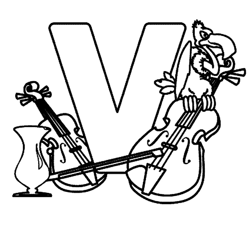 Descriere: Coloreaza litera V care este inconjurata de vioare.