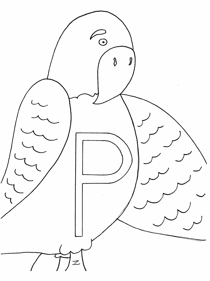 Descriere: Coloreaza papagalul din plansa de colorat cu litere.