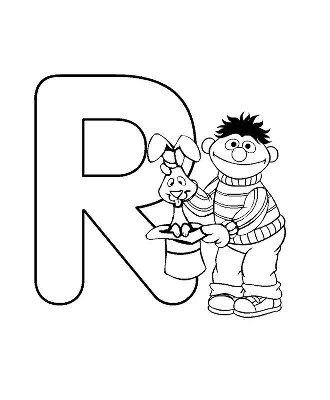 Descriere: Plansa cu litera R din alfabet alaturi de Papusile Muppet de la Disney.