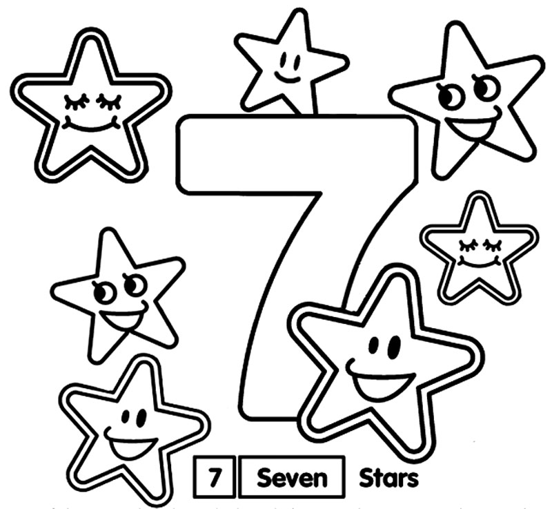 Descriere: Coloreaza cele sapte stelute impreuna cu cifra 7.