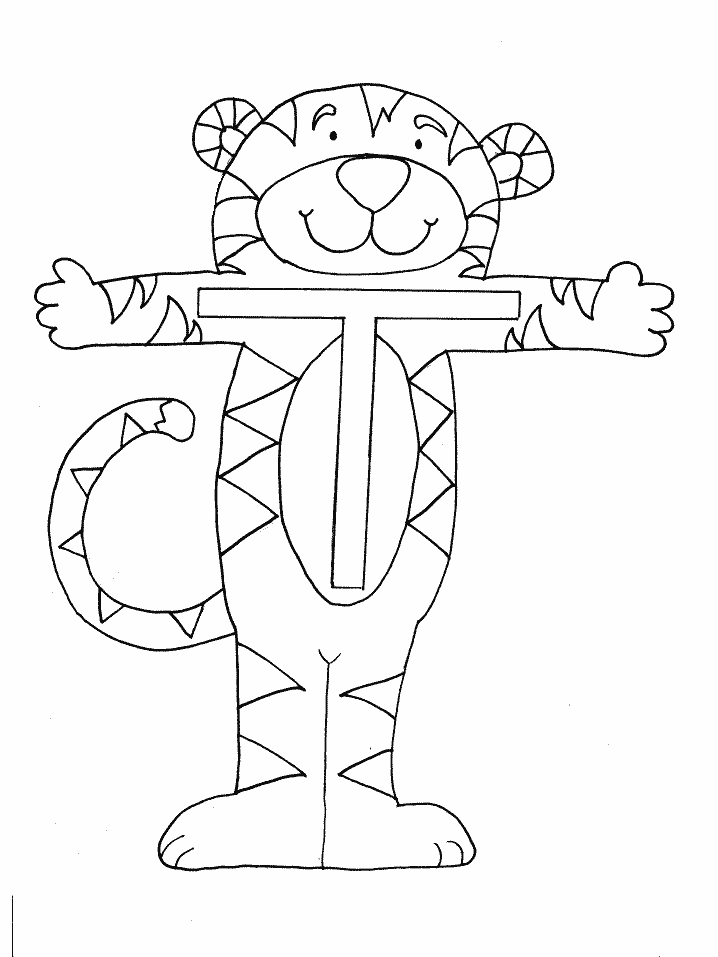 Descriere: Coloreaza litera T si tigrul din plansa cu litere.