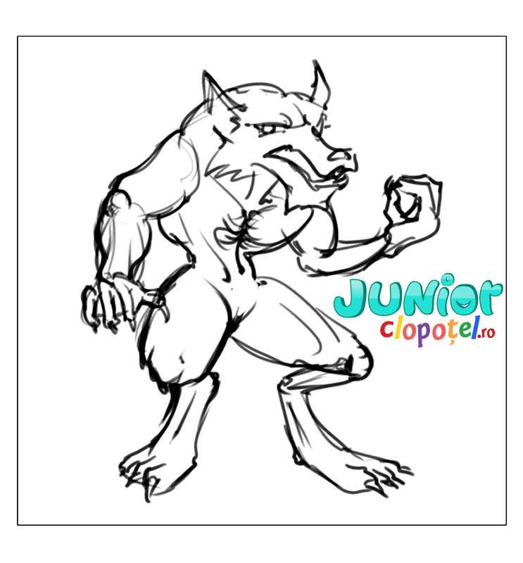 Descriere: Plansa de colorat cu un varcolac.