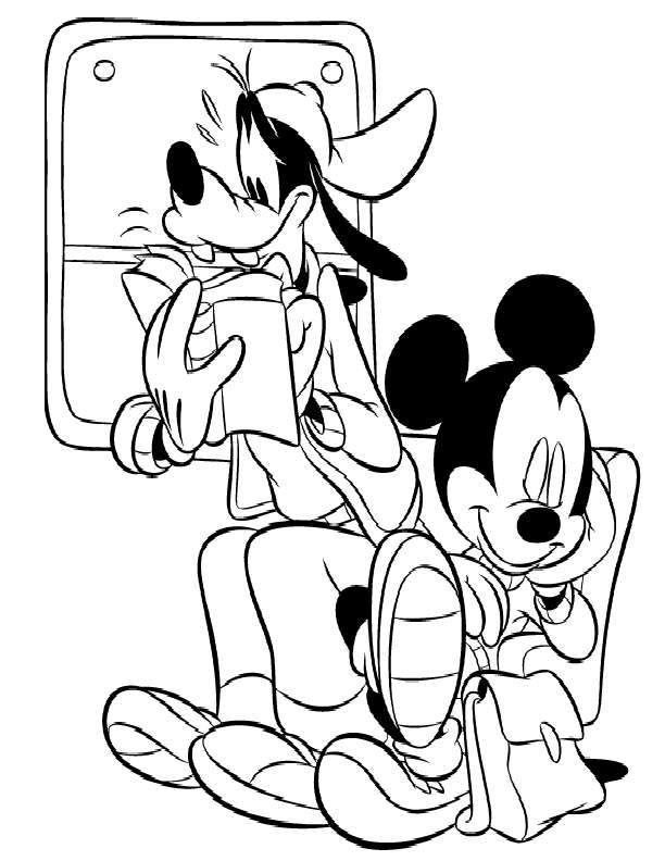 Descriere: Plansa de colorat Disney Junior cu Mickey Mouse in tren cu Goofy.