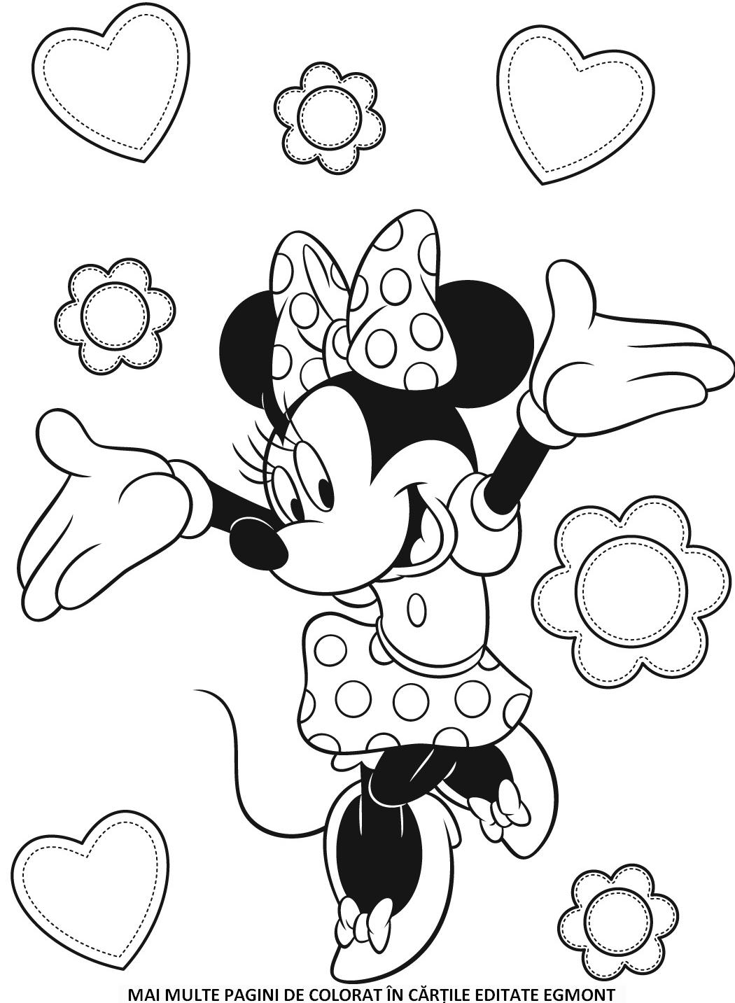 Descriere: Plansa de colorat Disney Junior cu Minnie Mouse fericita.