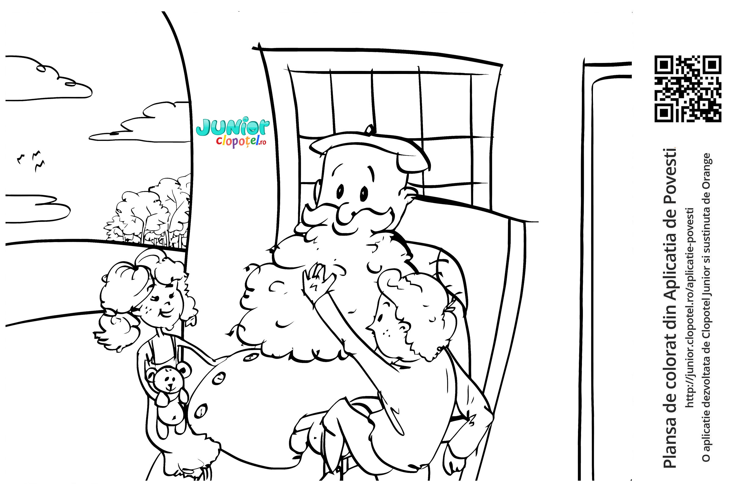 Descriere: Plansa de colorat cu barba bunicului. Scena din povestea "Bunicul" din aplicatia POVESTI. Daca vrei sa descoperi mai multe basme, descarca-ti aplicatia din Google Play sau App Store.